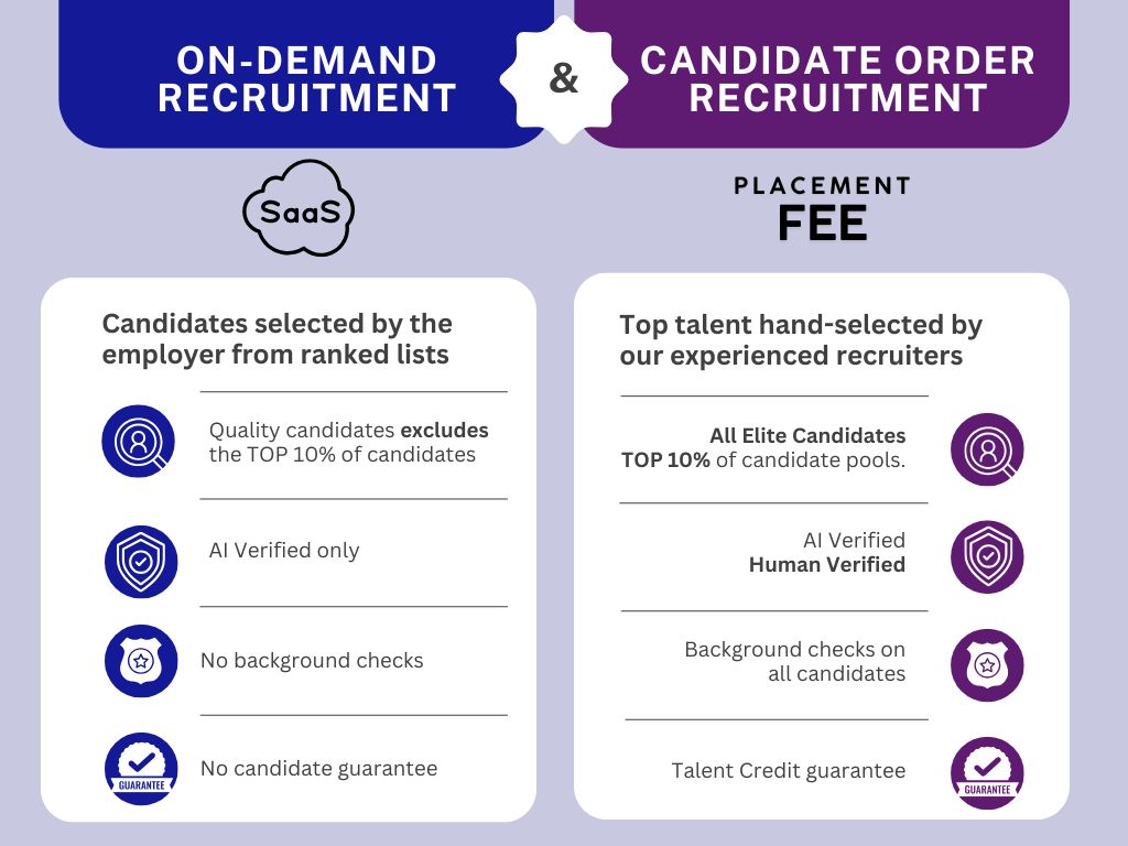 Our experienced recruiters receive the Candidate Order and filter, select and interview matched job seekers to provide a list of the best candidates for the role. There is no cost for this service and the employer only pays a placement fee if they hire one of the candidates. The features and benefits of the Candidate Order includes: